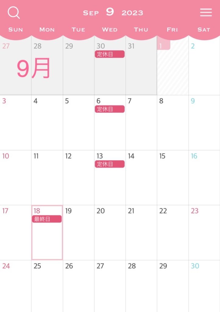 9月営業日のお知らせ